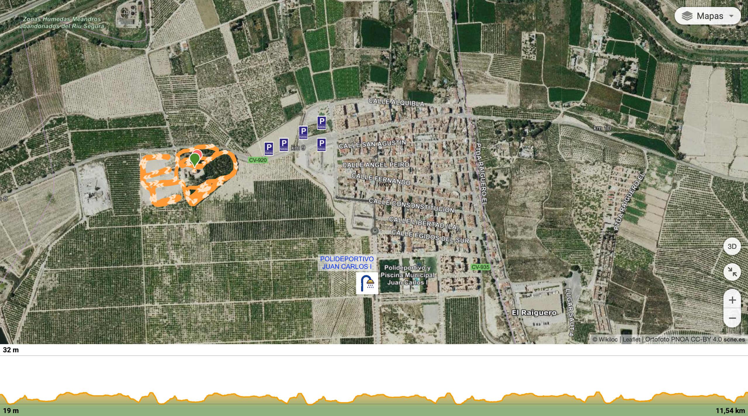 - Salida y llegada | Paraje Ermita Algorfa; Polígono Sector I, Equipamiento I; Ctra. (CV 920) Algorfa-Benejúzar, km 0,600