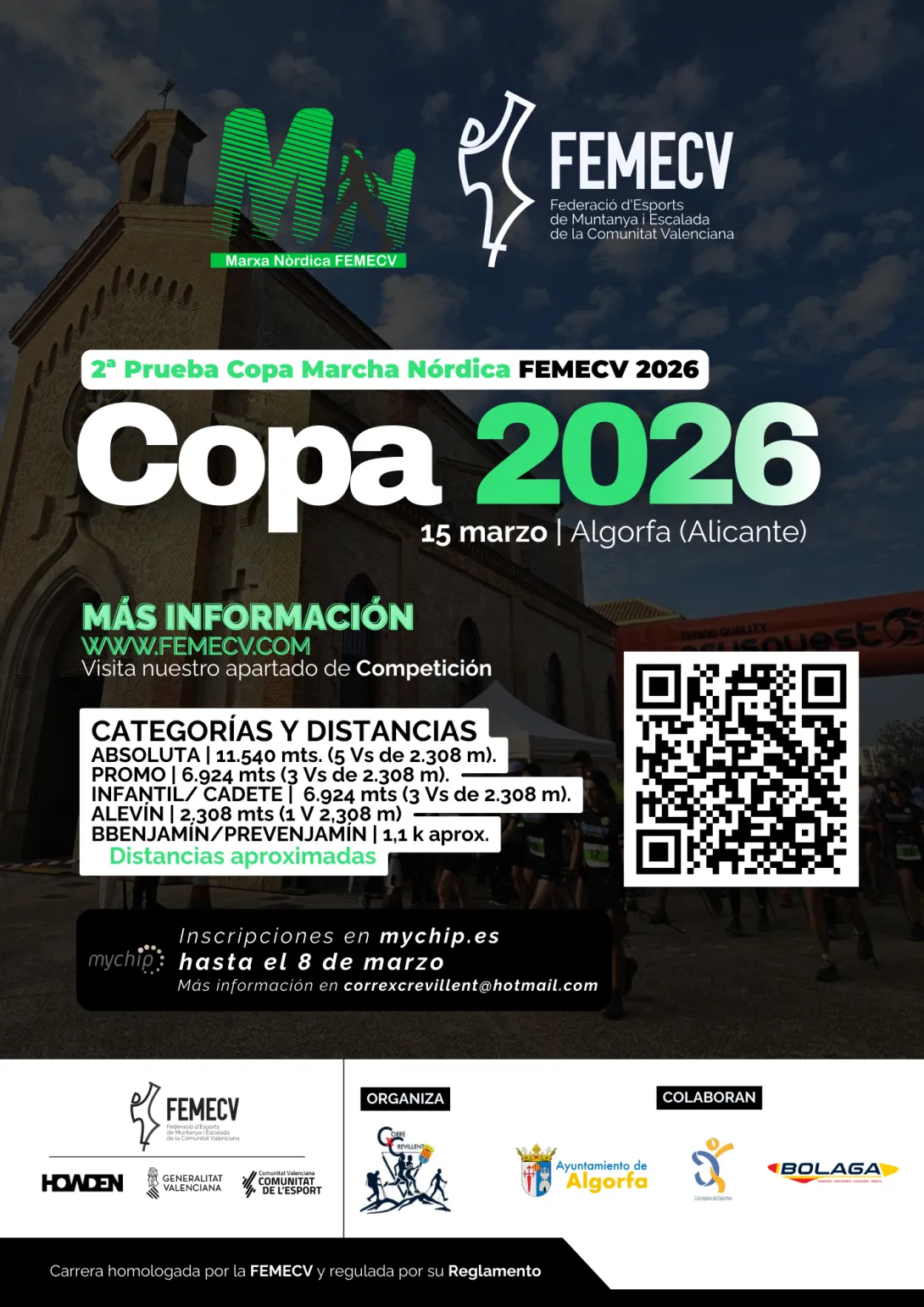 - Diploma de finisher para todos los inscritos incluida la PROMO que puedes descargar en: Mychip Clasificaciones 2ª Copa MN Ermita Algorfa 2026, o escaneando el QR de tu dorsal.