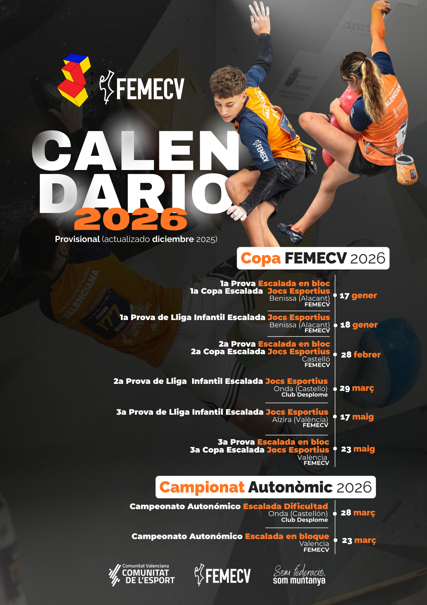 Calendario de Escalada FEMECV 2026