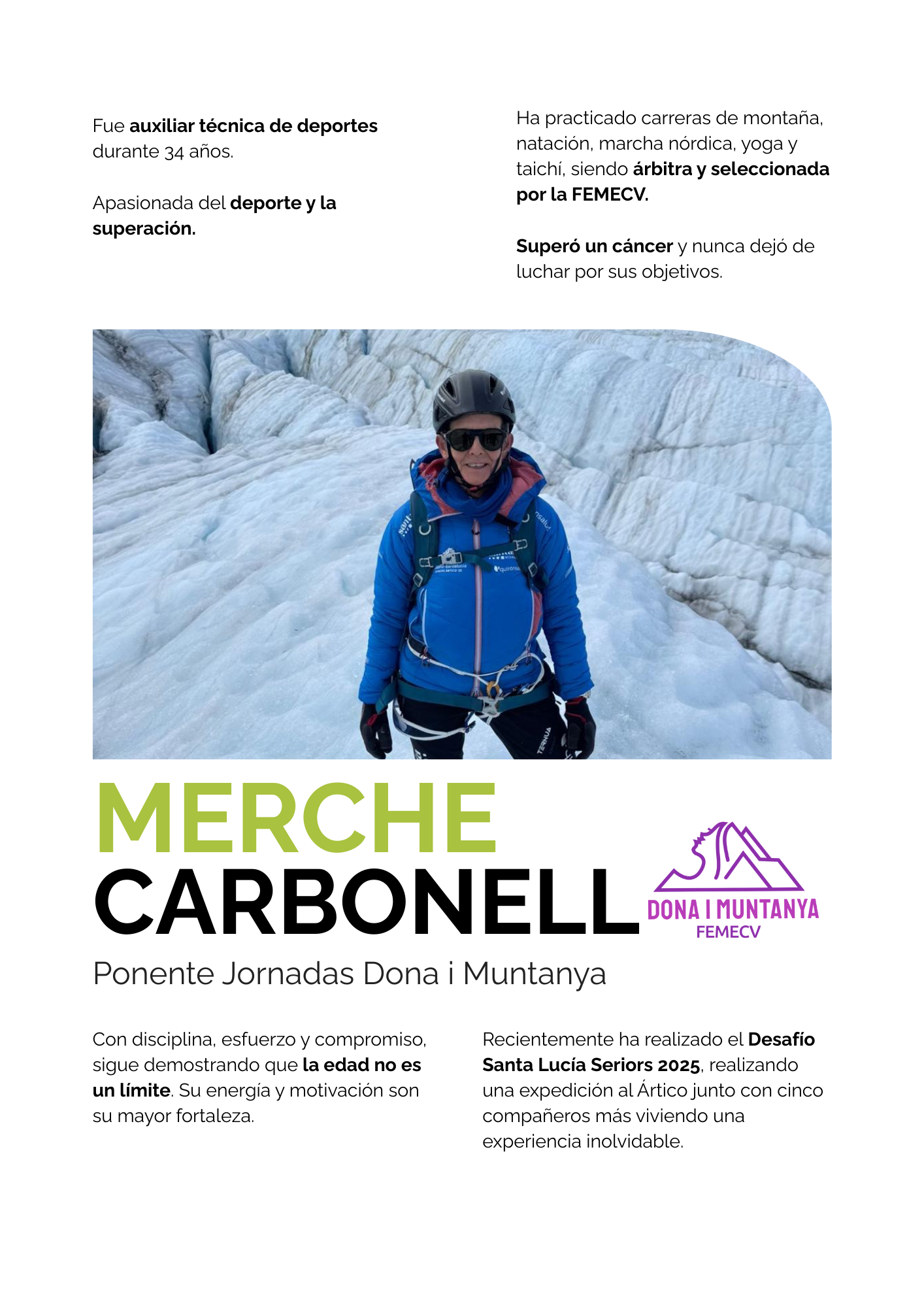 - Merxe Carbonell, Alpinista senior, enamorada del deporte de montaña en todas sus vertientes, que nos contara su reciente aventura en el Ártico