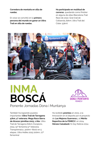 - Inma Boscá, corredora de montaña en silla de ruedas, 1ª corredora del mundo en ser Finisher en un ultra Trail en silla de ruedas