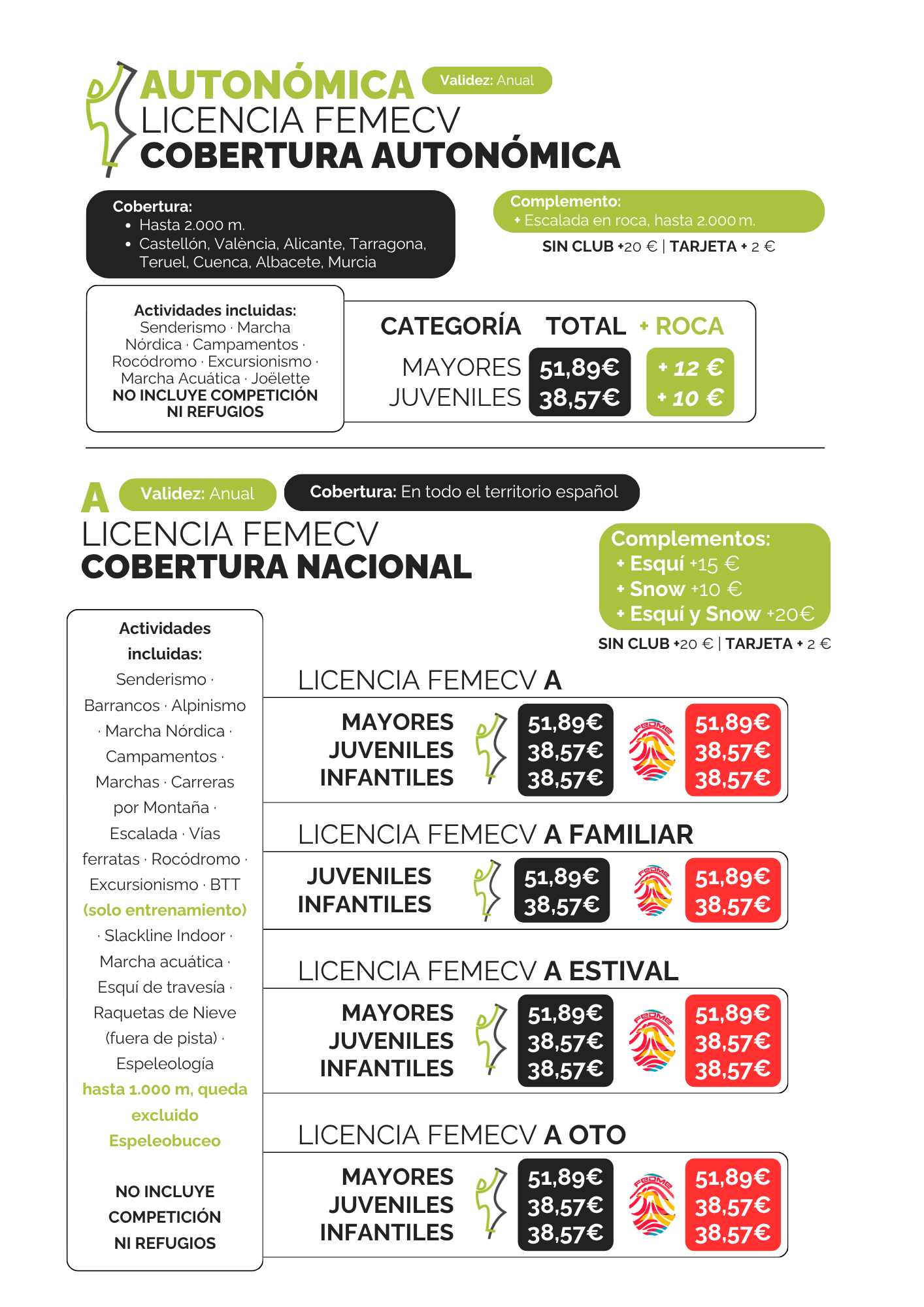 ☑️ Seguridad: incluye un seguro de accidentes y responsabilidad civil específico para deportes de montaña, ofreciendo protección durante tus actividades.