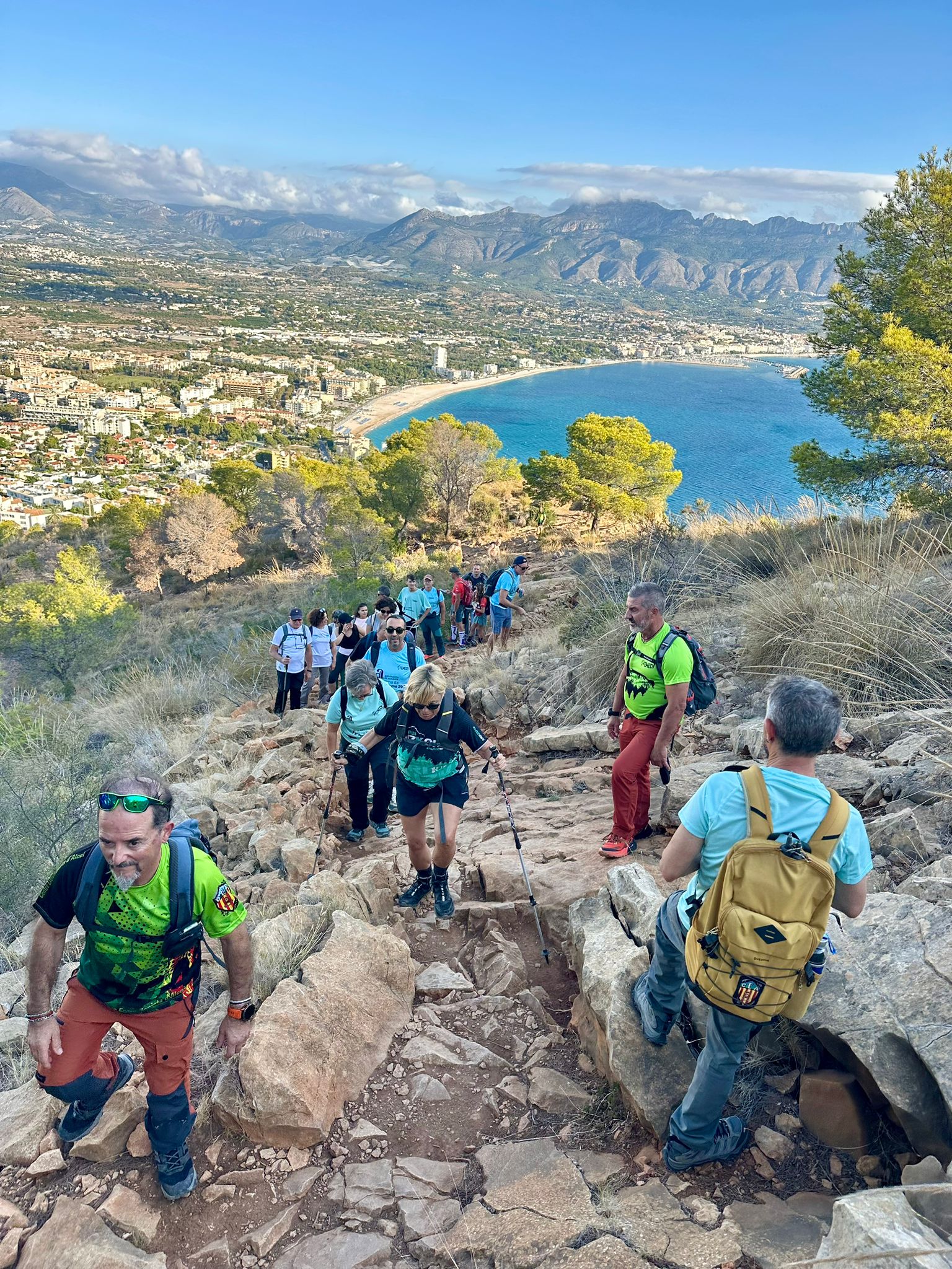 Kiko Hernández, Coordinador del Programa de Senderismo, nos comenta que "Desde el vértice, las vistas de la bahía de Benidorm y los acantilados precipitándose en el mar son impresionantes, teniendo unas vistas de la duna fósil colgante maravillosas, con el mar debajo".