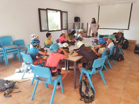 Ubicado a escasos 300 metros de la Saraella (piscina de agua salada de la que han disfrutado todos los días) y equipado con un aula que ha sido nuestra base de operaciones durante el Campus y dónde hemos hecho charlas. talleres de material, de seguridad, de nudos, de transporte y almacenamiento de cuerdas, proyección de películas, fiesta de despedida y almacén de material.