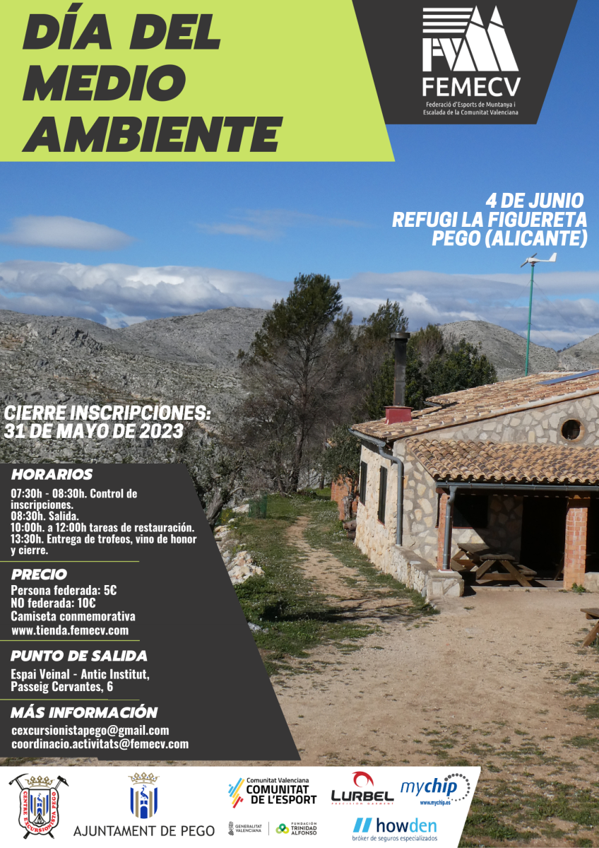 Continuamos con el calendario de actividades asociativas 2023, anunciando el Día del Medio Ambiente, organizado por Centre Excursionista de Pego, tendrá lugar en Pego (Alicante).