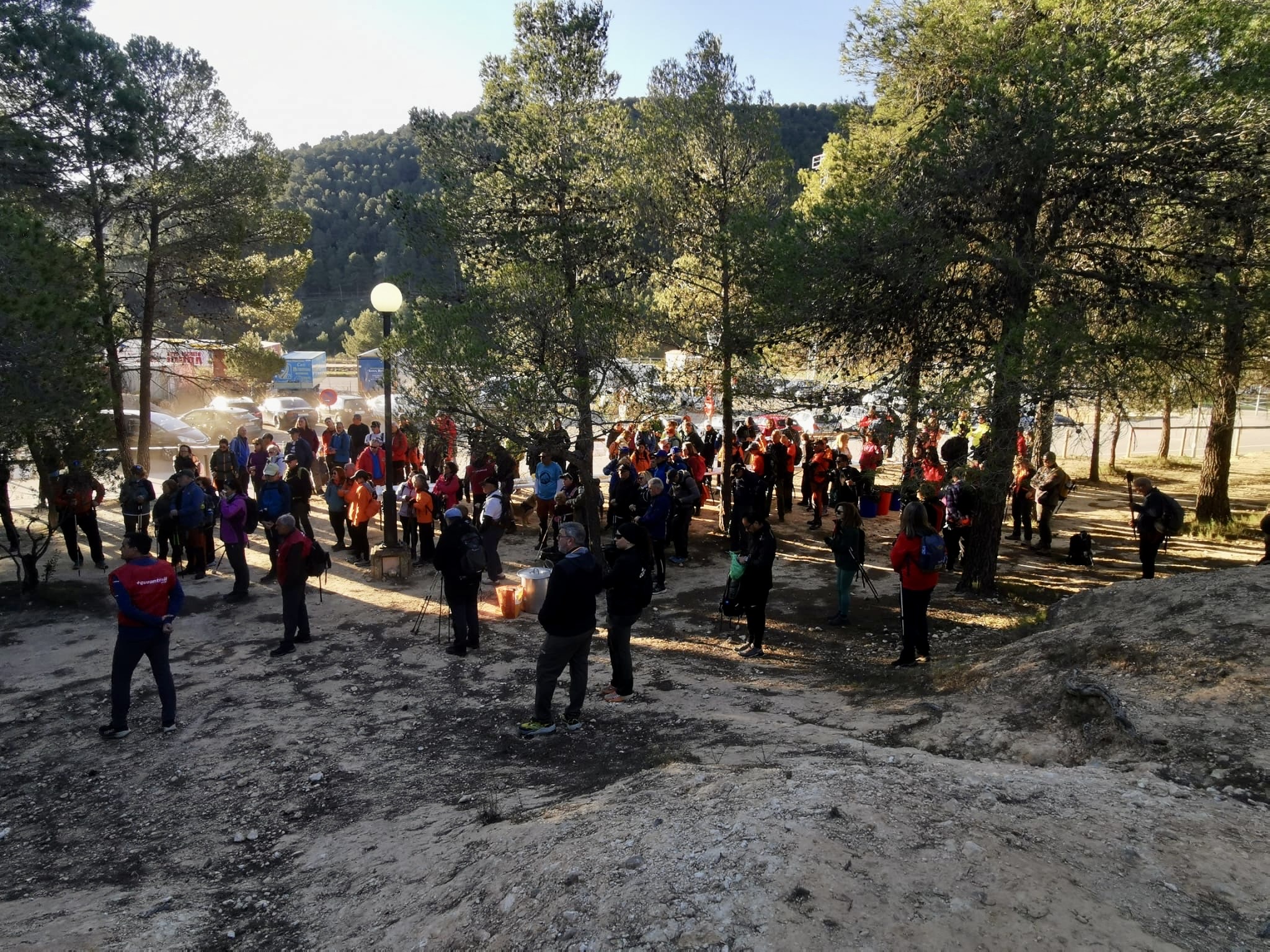 La actividad arrancó mucho antes de la salida oficial. A las 5:30 h, el equipo responsable del recorrido ya revisaba la señalización para garantizar la seguridad de la jornada. A partir de las 7:00 h, 25 voluntarios y voluntarias del Grup Excursionista Ratot, junto a su sección de senderismo y miembros de la junta directiva, prepararon en el Polideportivo Francisco Laporta toda la infraestructura de recepción y desayuno.