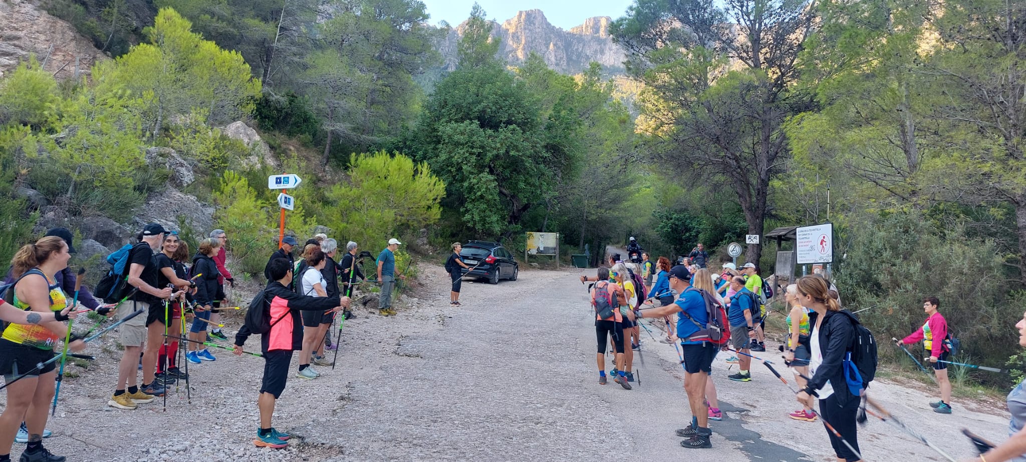 La mañana comenzó con una ruta de 2 horas y media por la Vía Verde del río Serpis, entre paisajes de montaña, puentes, túneles y cascadas. La actividad incluyó estiramientos previos y posteriores, subrayando la importancia de la técnica y la salud en esta disciplina.