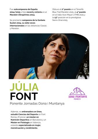 - Júlia Font, corredora per muntanya, és entrenadora amb estudis en l'àmbit esportiu, especialista en dona, menstruació i rendiment.