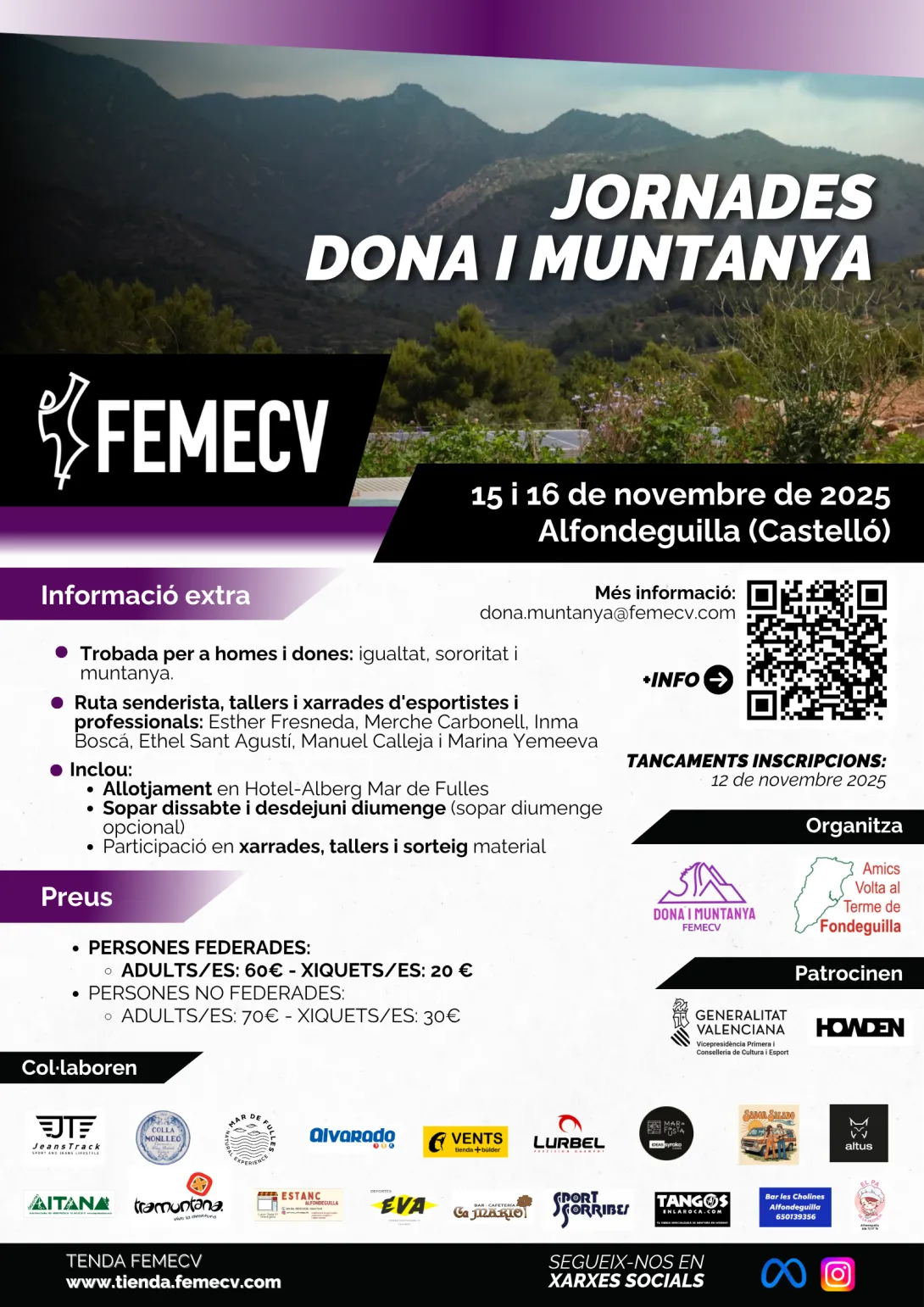 - 10:30h - 14:00h | Primers Auxilis en el medi natural i Preparació física i prevenció de lesions, a càrrec de