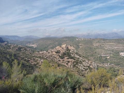 Desde aquí y ya en continua bajada continuamos la marcha para llegar a la Cova de les Miqueles, otro abrigo natural para el ganado, y muy cerca nos encontramos con la Font de L'Ombrereta, fuente donde sale parte del agua que abastece a la población de Pedreguer, a la cual llegamos seguidamente.