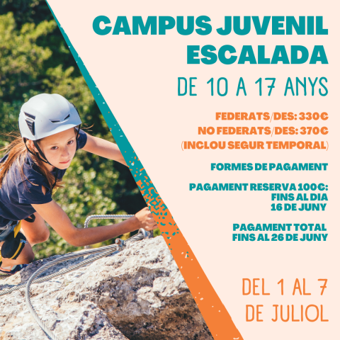 - Campus Juvenil d'Escalada: federats/des 330€ - no federads/des 370€.