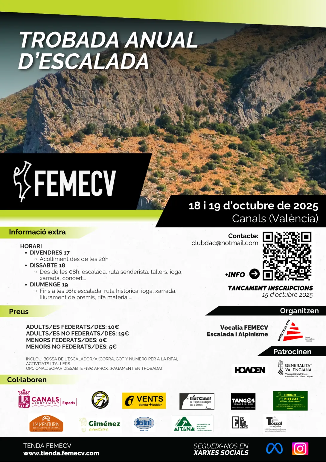 Hi ha 100 places oferides, per a escaladors i escaladores adults i també menors d'edat.